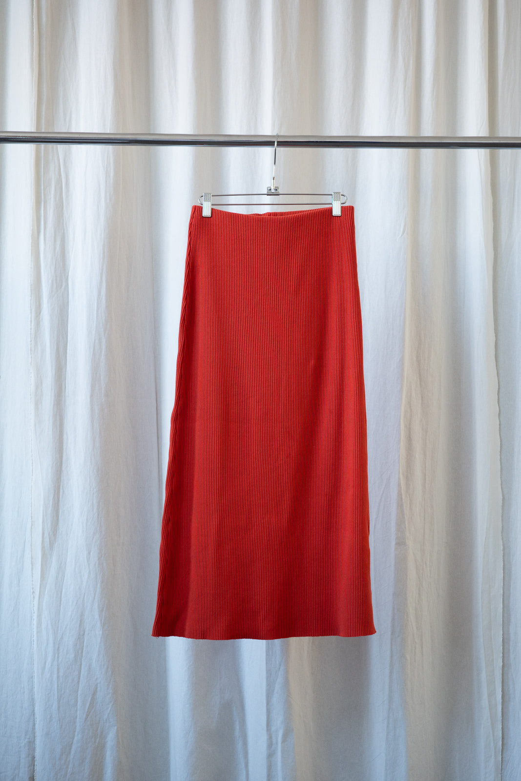 Size S - Ribbed Knit Midi Skirt in Grenadine - Dye Imperfection